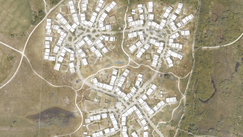 Le plan directeur est divisé en trois sous-sections circulaires, permettant à un sentiment de communauté plus intime et à petite échelle de s’épanouir. Des andains naturels plantés à l’état sauvage s’étendent entre ces trois mini-villages, garantissant la libre circulation des espèces locales et intégrant la nature dans l’agencement central de la nouvelle communauté. En ce sens, les trois sous-sections sont de petites îles dans une mer sauvage de vert.
