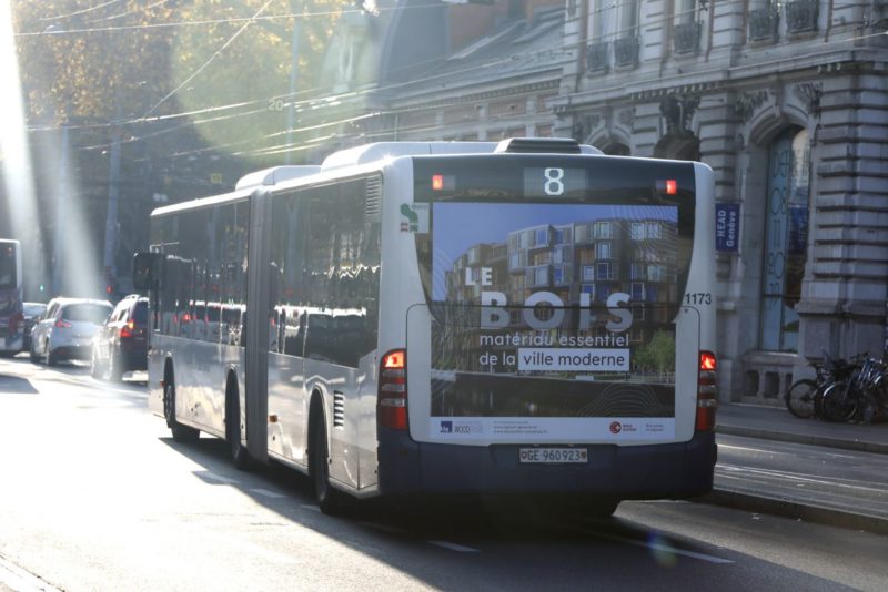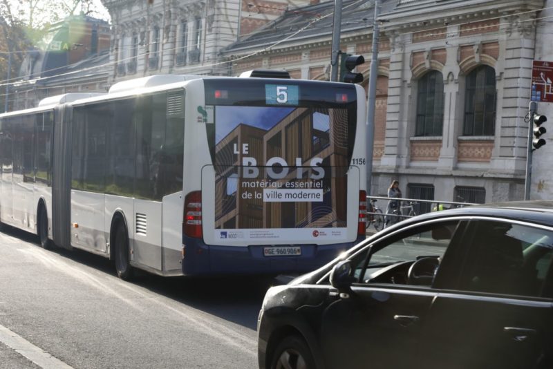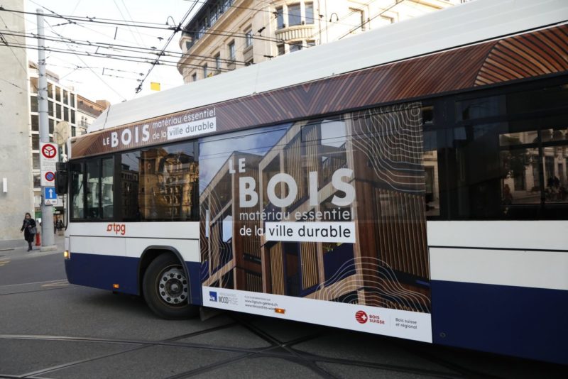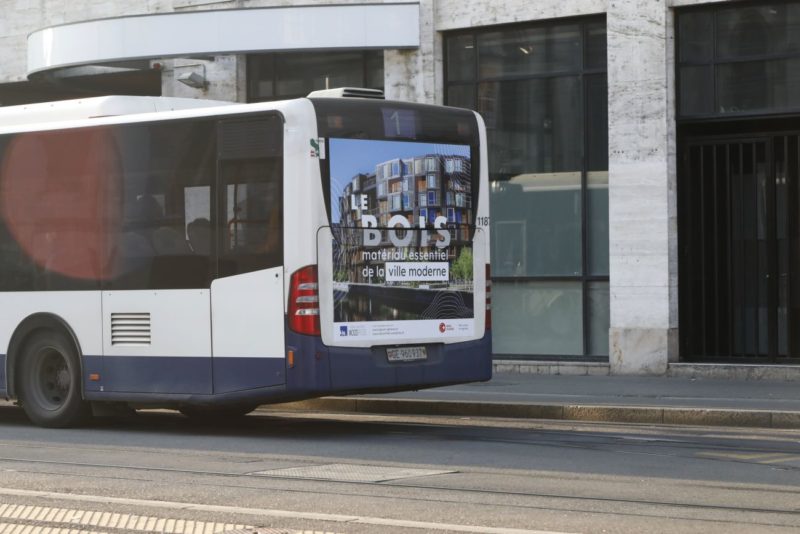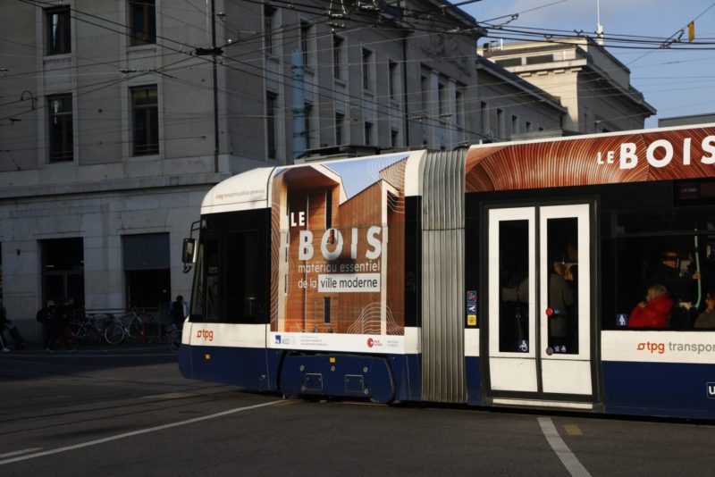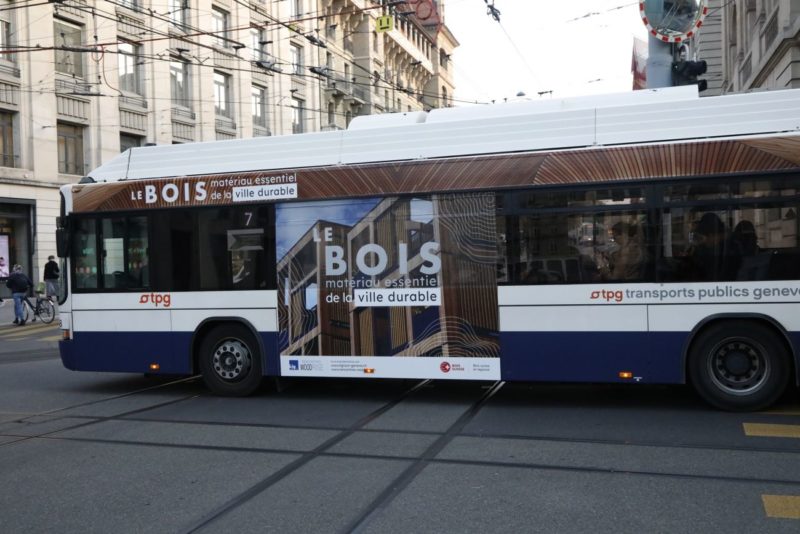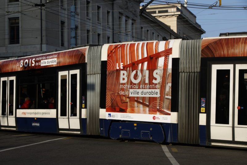 Lignum Genève lance une nouvelle action de sensibilisation en faveur du bois par divers canaux de communication, dont l’affichage public sur les Transports Publics Genevois.